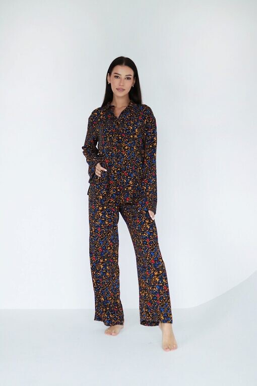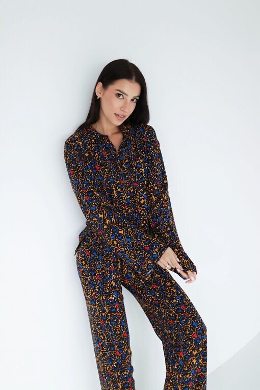 Set LOCO to wyjątkowy set o prostym, luźnym i zgrabnym kroju, uszyty z pięknej tkaniny w niespotykanym, oryginalnym princie. Ten set podkreśli każdą urodę i będzie prezentować się zjawiskowo! Zastosowany w nim w 100% naturalny, oddychający materiał jest wręcz stworzony do kontaktu z ciałem, dając totalny komfort noszenia. Luźnie spodnie ze średnim stanem wraz z przewiewną koszulą tworzą zestaw dopracowany z największą starannością. Delikatna i lejąca tkanina oraz odpowiednio dopracowany krój, doskonale podkreślają sylwetkę i ukrywają wszelkie niedoskonałości. Koszula LOCO wykończona jest lekkim zaokrągleniem i rozcięciami po bokach, co daje wiele możliwości noszenia, a przy tym dodaje letniego luzu. Model posiada delikatnie rozszerzane rękawy, drobny kołnierzyk i wyjątkowe czarne guziki. Spodnie LOCO posiadają w pasie 5-centymetrową gumę, co sprawia, że idealnie leżą na brzuchu, dopasowują się do sylwetki i się nie wpijają. Dodatkowo posiadają wygodne, regularne kieszenie. Zestaw LOCO to totalny MUST HAVE na wiosenno-letnie miesiące. Koszulę i spodnie możesz też nosić oddzielnie, zakładając do nich proste, jednobarwne góry i doły (legginsy, jeansy, topy, body czy t-shirty). Do setu LOCO sprawdzi się obuwie zarówno sportowe, jak i letnie klapki, espadryle czy sandały.