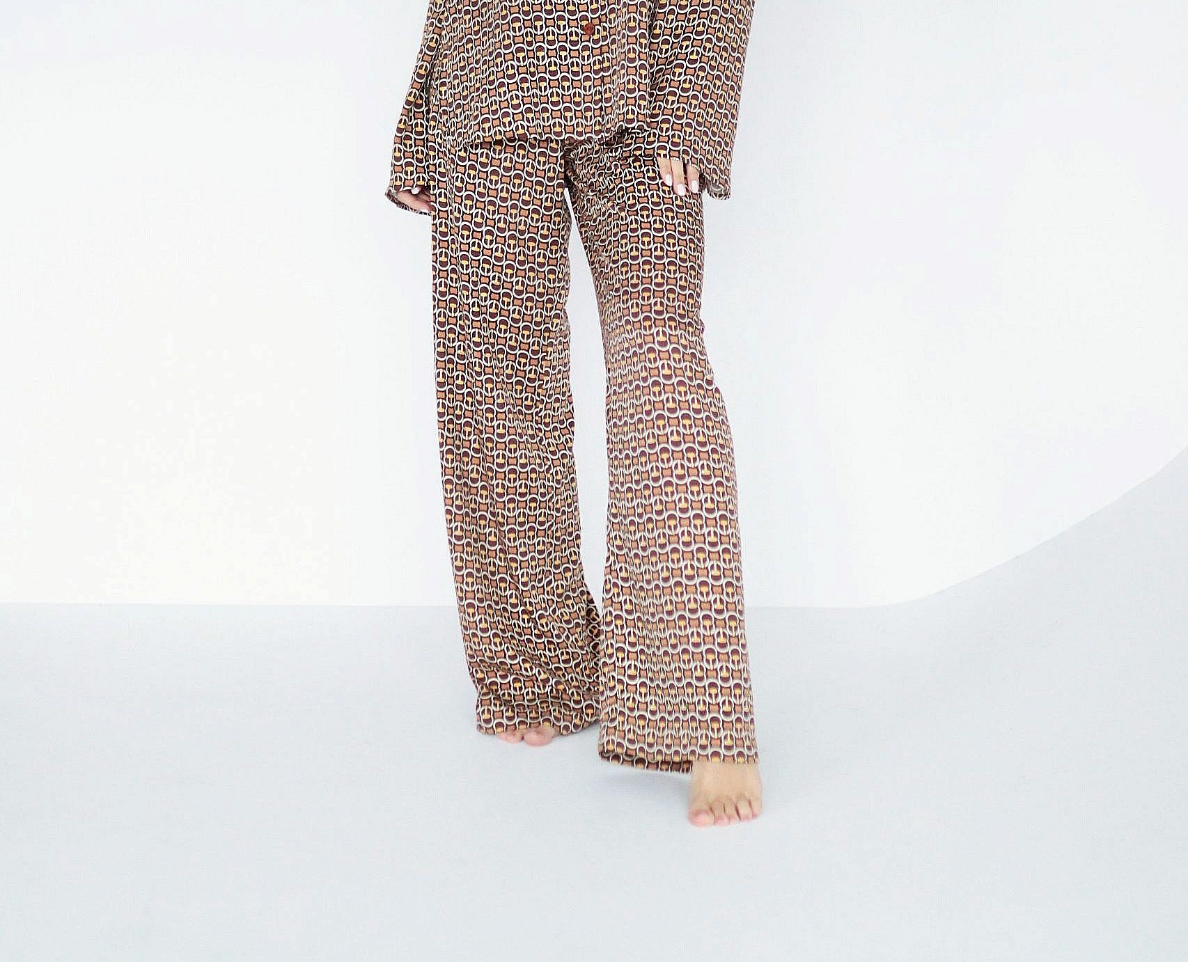 Spodnie DOLCE to miejski szyk we włoskim stylu. Wraz z KOSZULĄ DOLCE tworzą niebanalny set uszyty z pięknej, najwyższej jakości oddychającej tkaniny w beżowo-brązowych tonach. Szersze nogawki i średni stan tworzą model dopracowany z największą starannością. Podkreślają sylwetkę, świetnie się układają i dają 100% komfortu noszenia. Zastosowana w pasie 5-centymetrowa guma sprawia, że spodnie idealnie leżą na brzuchu, dopasowują się do sylwetki i się nie wpijają. Dodatkowo posiadają wygodne, regularne kieszenie. To wszystko składa się na szykowny, śródziemnomorski luz. Zastosowana tkanina jakości premium jest wprost stworzona do kontaktu z ciałem. Grubsza struktura materiału jest przyjemnie lejąca i ukrywa wszelkie niedoskonałości. Spodnie DOLCE to totalny MUST HAVE na wiosenno-letnie miesiące. Prezentują się zjawiskowo, a nosząc je poczujesz prawdziwie włoski vibe! Spodnie DOLCE założysz nie tylko do naszych koszul, ale także do prostych gór, takich jak czarne i białe topy lub t-shirty. Do modelu DOLCE sprawdzi się obuwie zarówno sportowe, jak i letnie klapki, espadryle czy sandały.